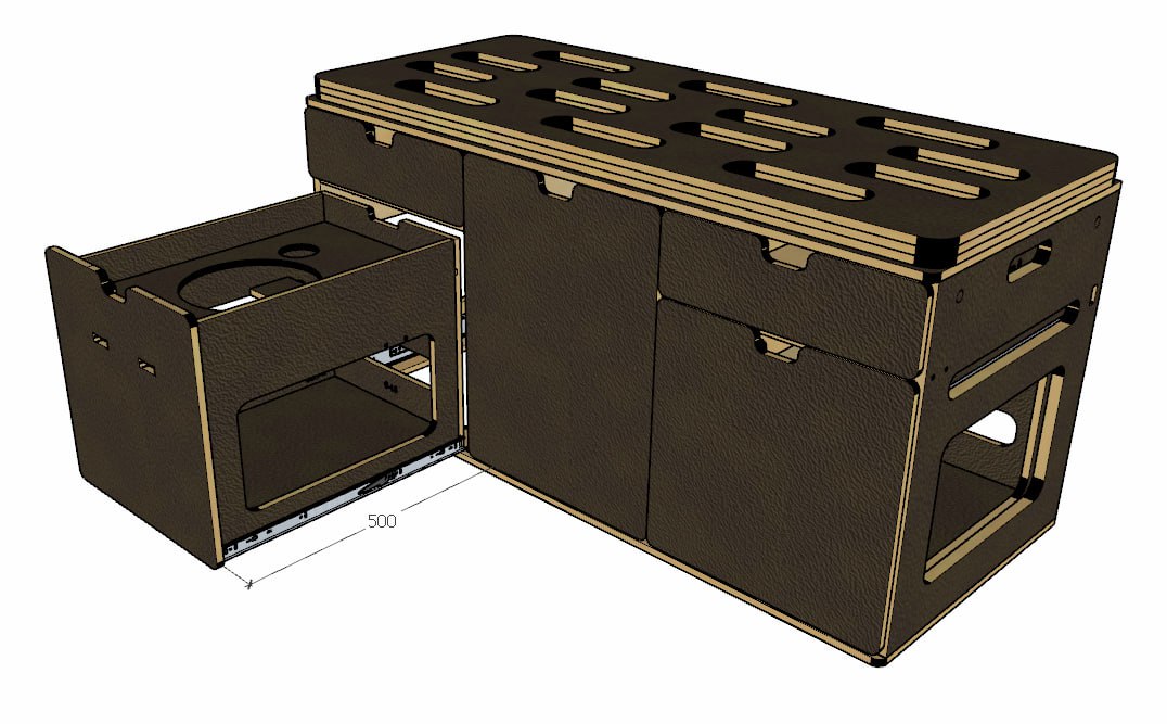 Campingmodul CampWheel Camper Box 3.0 (Braun) für VW T4, T5, T6, T6.1, Caravelle