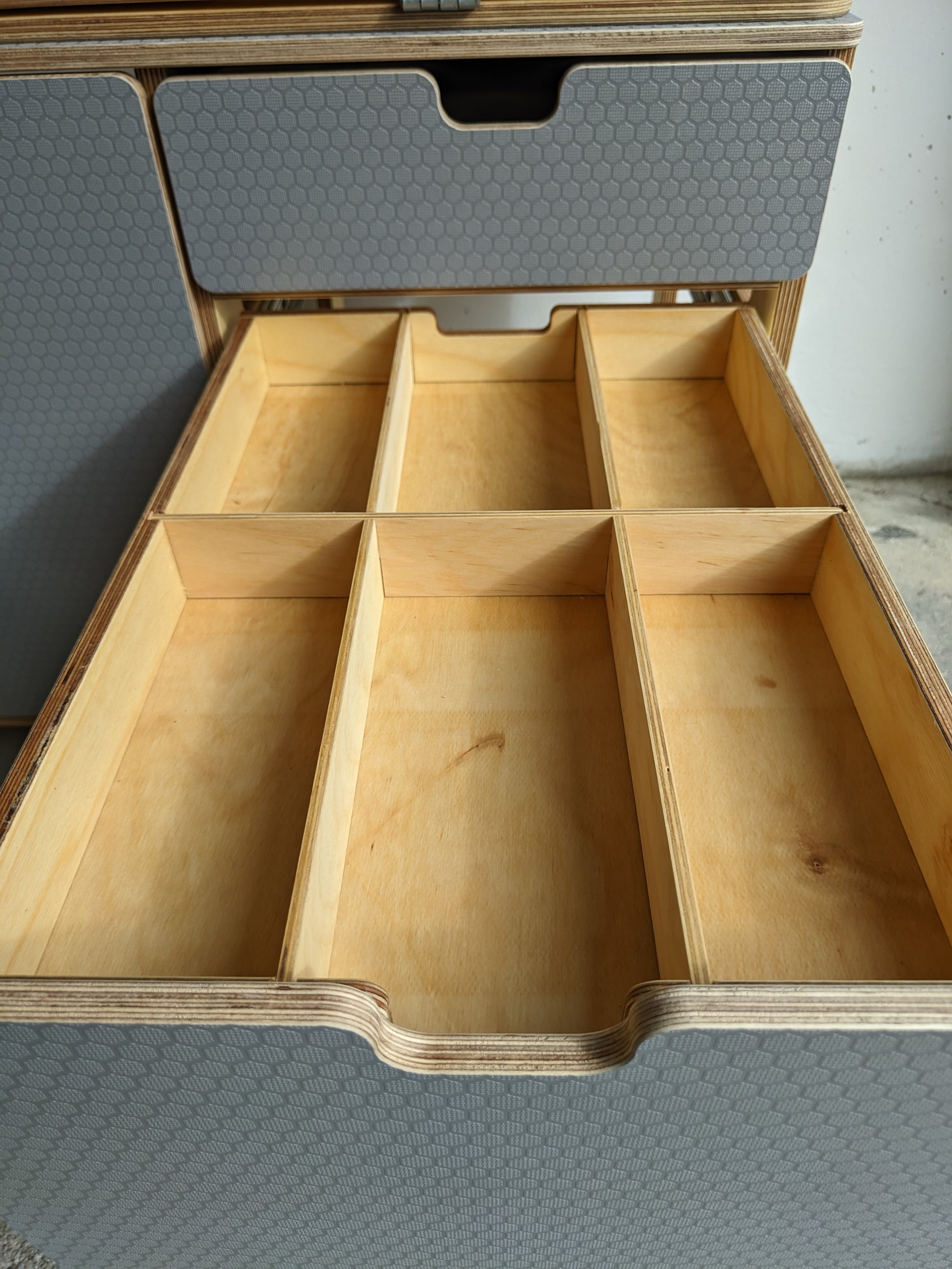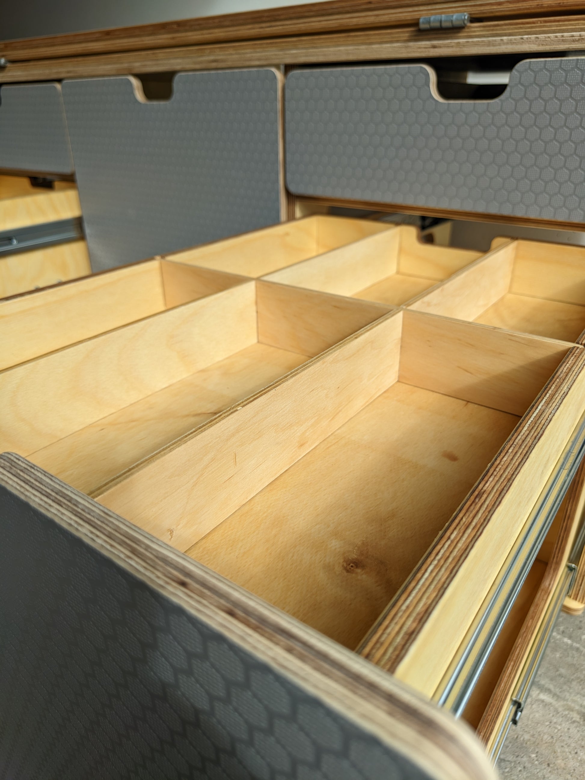 - Viele praktische Schubladen zur Aufbewahrung diverser Kleinigkeiten,