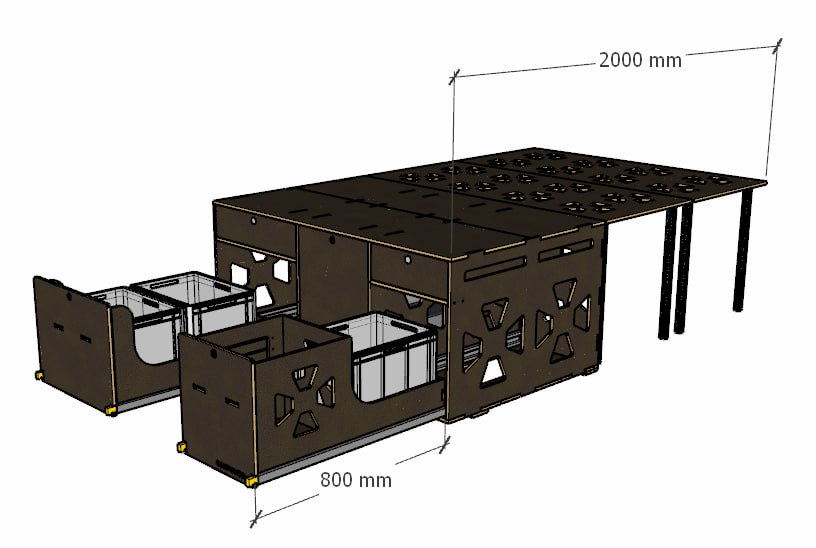 Praktische Einteilung für Küche, Boxen, Kocher und weiteres Campingzubehör -