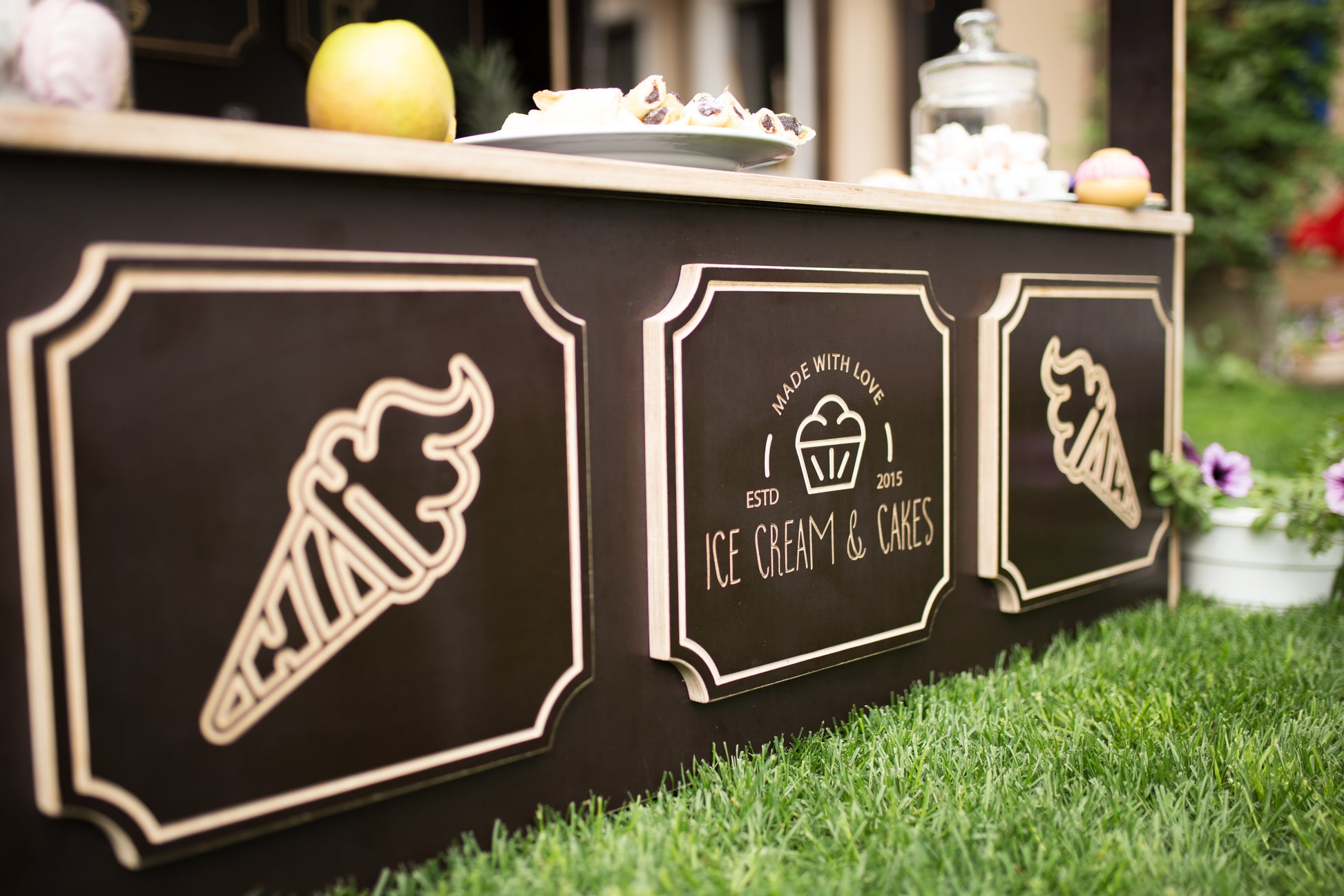 - Elegante, gelaserte Dekorplatten mit Motiven wie Eis, Desserts und Getränken.